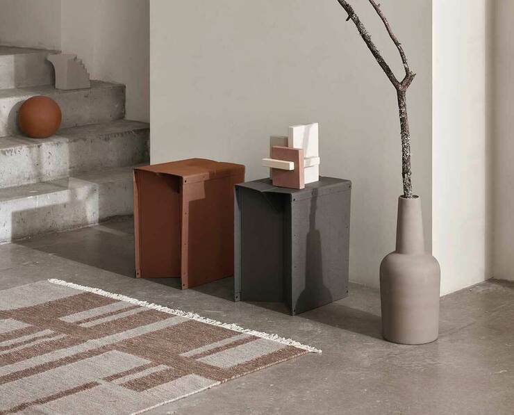 Kristina Dam Studio’nun “Sturdy Edo” sehpaları karton ve kumaş kullanılarak üretilmiş. Geri dönüştürülmüş karton ve kumaşın katlanabilir bir sehpaya dönüşebilmesi için gerek duyulan insan gücünün muadillerine göre çok düşük olması tasarımı daha değerli kılıyor.